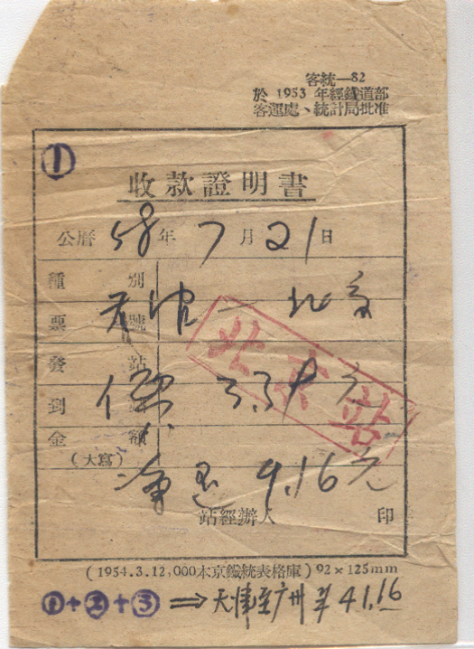此件独一无二的藏品为年代趣味藏品  ,邮戳为      加盖北京站章,另手写天津至广州41.16元  * 此戳可能尚待精确解析,可联系优先免费核实,更欢迎邮友先进指正补充 联系我们