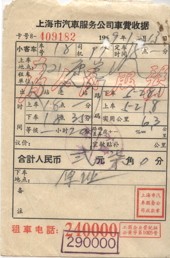 1969年01月13日上海戳 *
