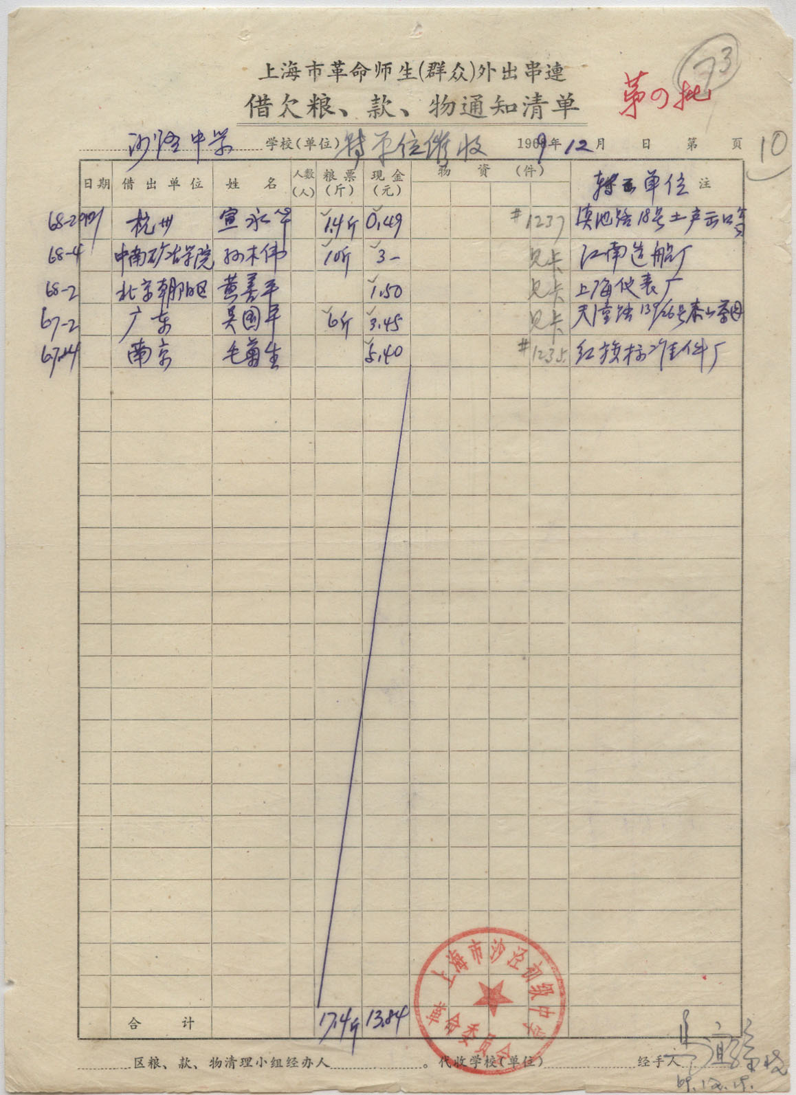 1969年12月01日上海戳 *