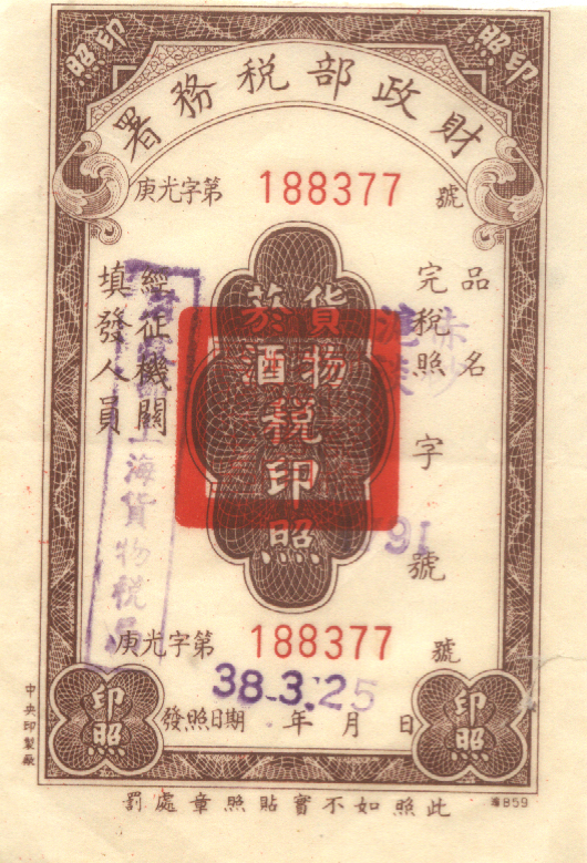| 上海 | 上海财政机关税务局 | | | 全戳邮票 |