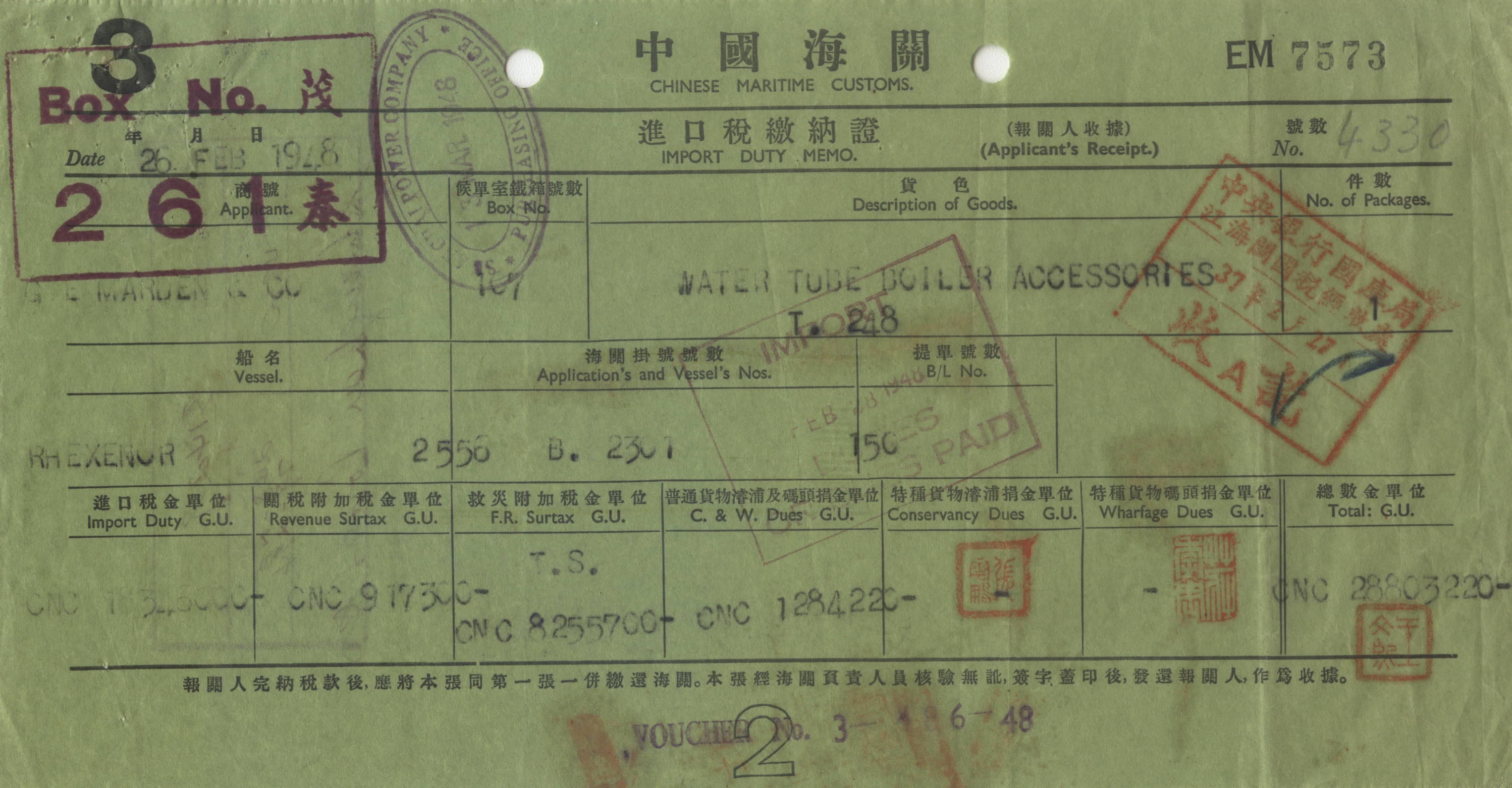 1948年02月28日江海关戳 *