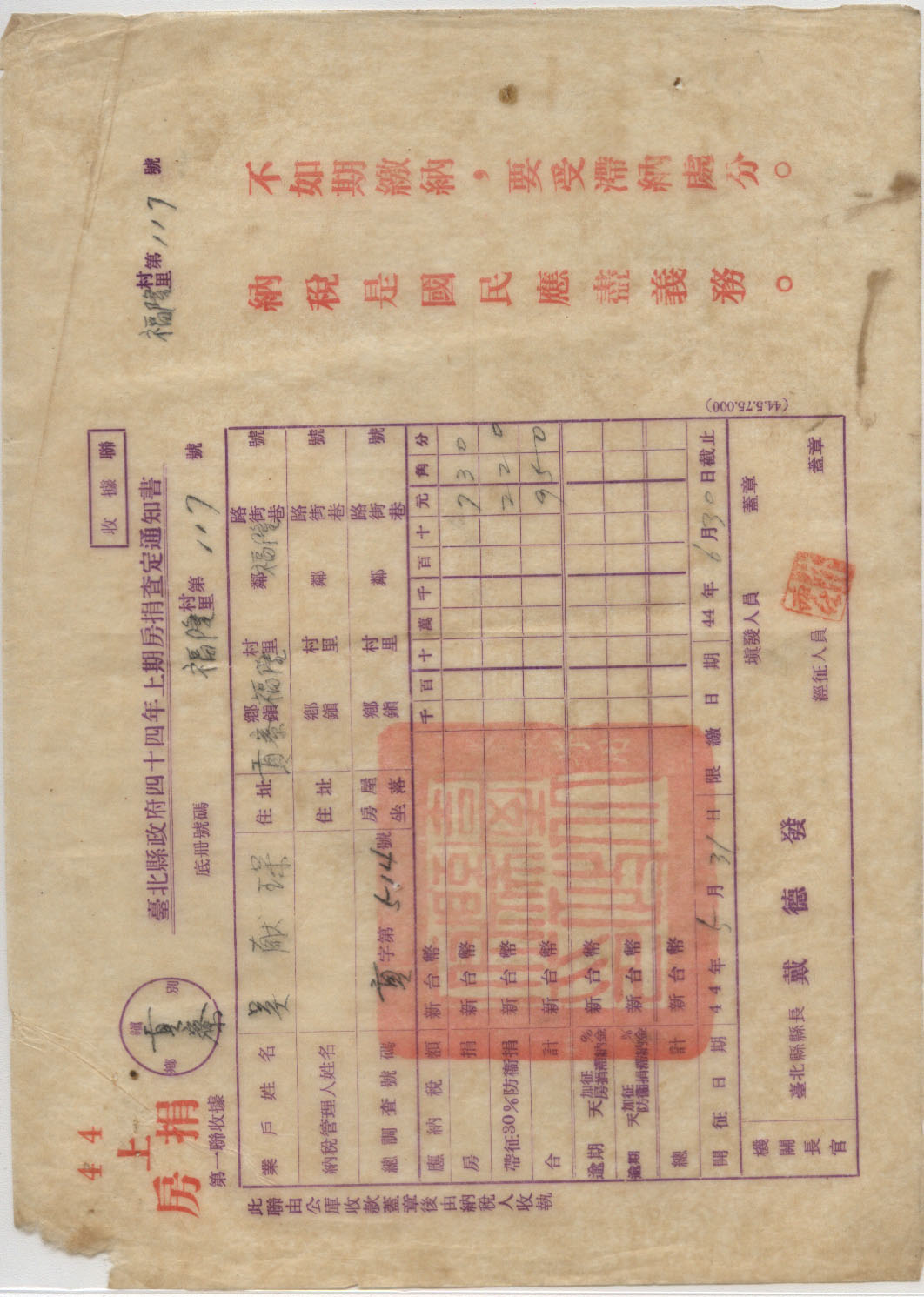 1955年05月31日台北县戳 *