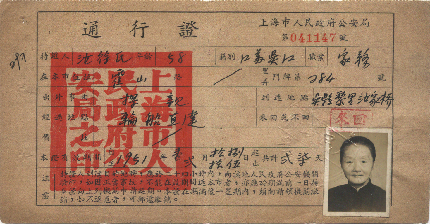 此件独一无二的藏品为年代趣味藏品  ,邮戳为      加盖上海市人民政府公安局之印,背面盖有吴江县黎里镇人民政府  * 此戳可能尚待精确解析,可联系优先免费核实,更欢迎邮友先进指正补充 联系我们