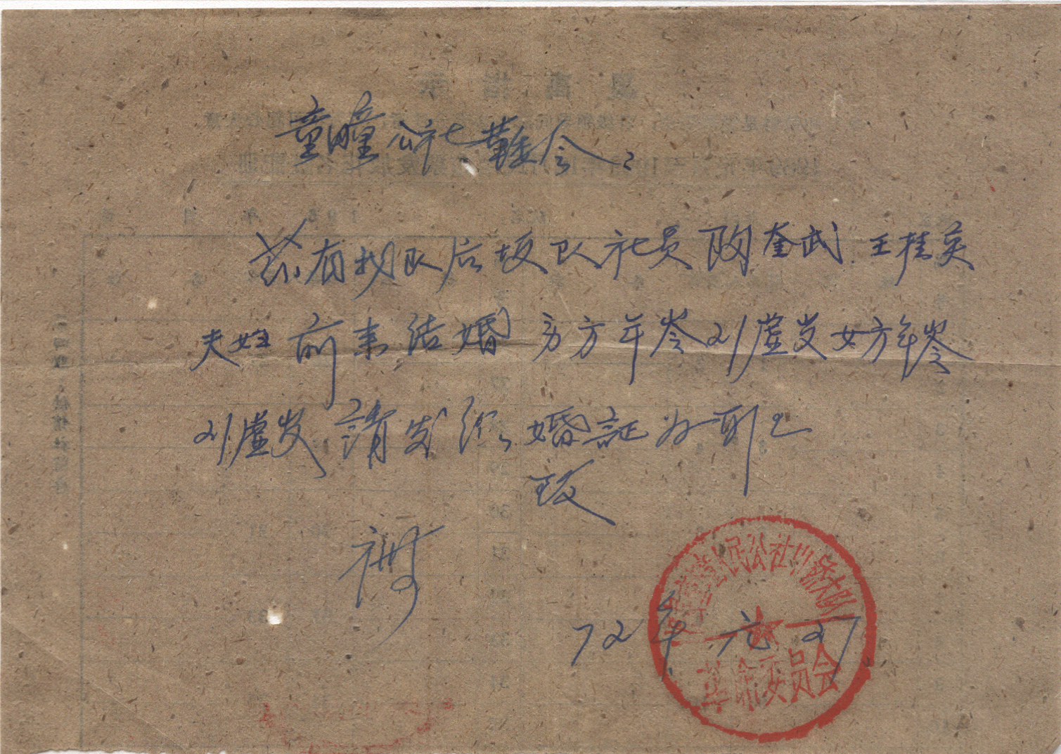 此件独一无二的藏品为年代趣味藏品  ,邮戳为      手写盖章,另一面是布票发放登记册,有最高指示:政策和策略是党的生命,各级领导同志务必充分注意,万万不可粗心大意。  * 此戳可能尚待精确解析,可联系优先免费核实,更欢迎邮友先进指正补充 联系我们