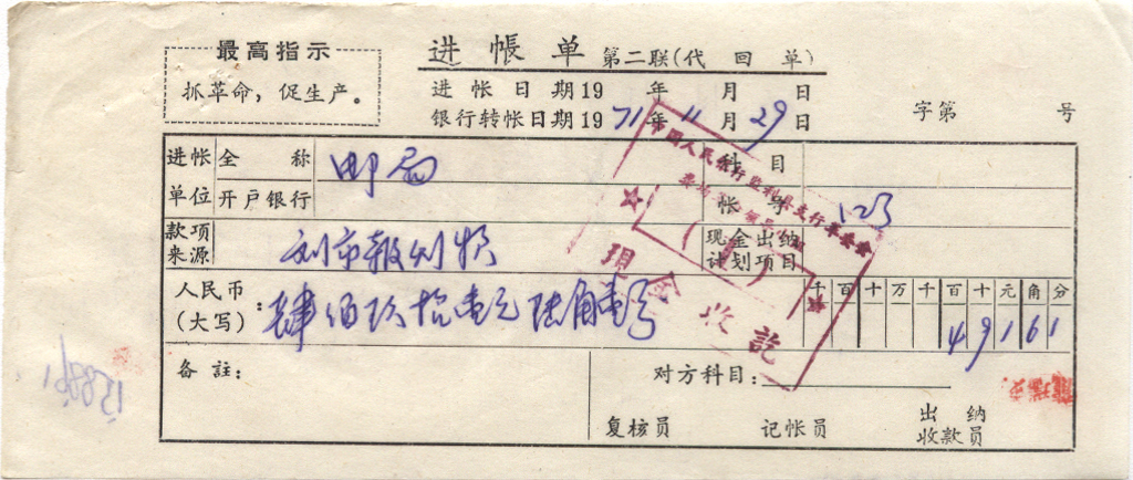 <   1971年11月29日使用于龚场的年代趣味藏品 ~ 点图放大