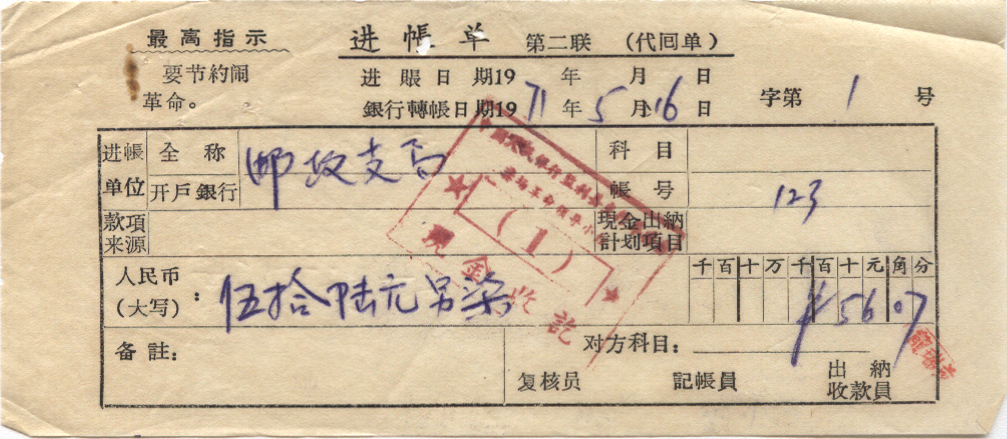 <   1971年05月16日使用于龚场的年代趣味藏品 ~ 点图放大