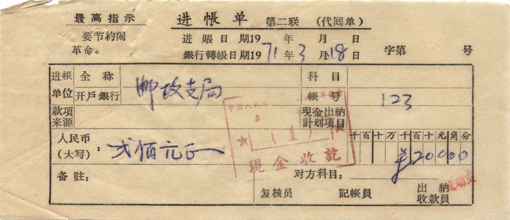 <   1971年03月18日使用于龚场的年代趣味藏品 ~ 点图放大