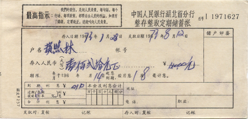<   1973年01月28日使用于湖北的年代趣味藏品 ~ 点图放大