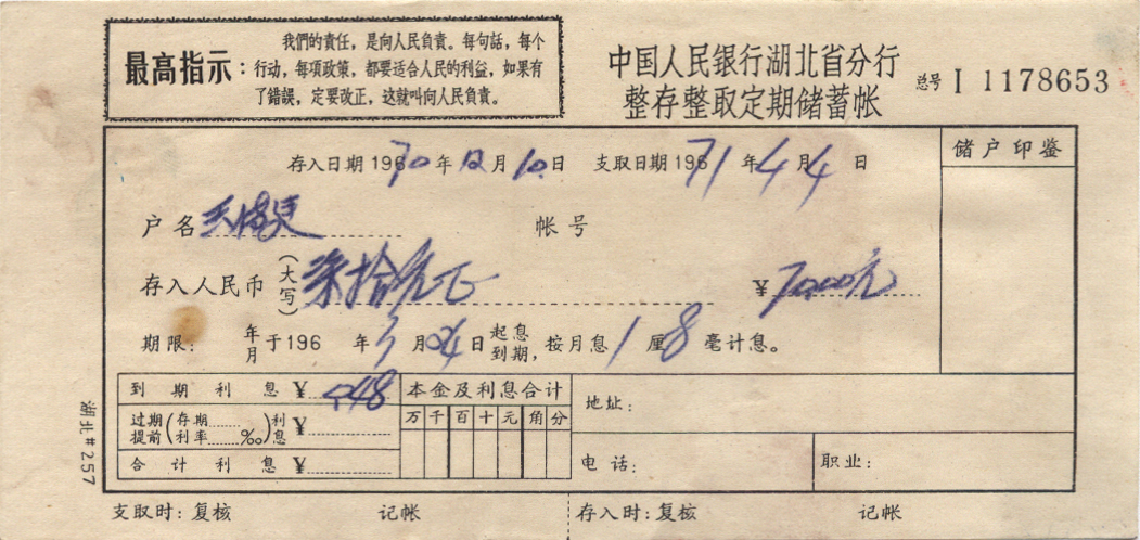 <   1970年12月10日使用于湖北的年代趣味藏品 ~ 点图放大