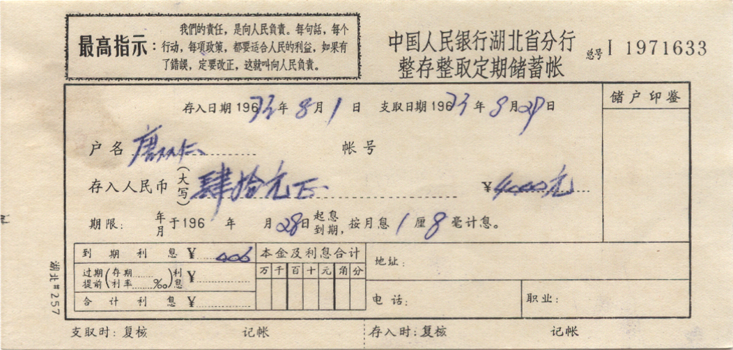 <   1973年08月01日使用于湖北的年代趣味藏品 ~ 点图放大