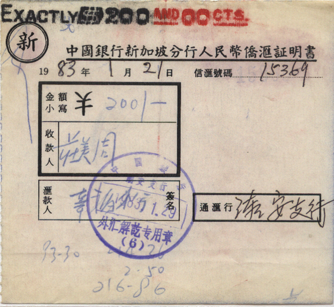 <   1983年01月21日使用于新加坡的年代趣味藏品 ~ 点图放大