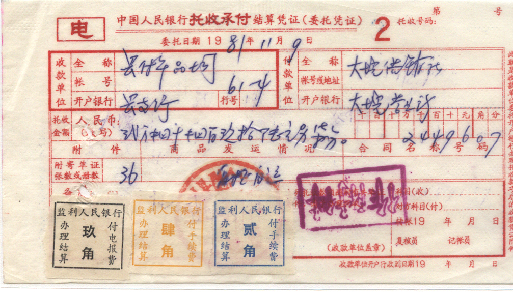 <   1981年11月09日使用于大埦供销社的年代趣味藏品 ~ 点图放大