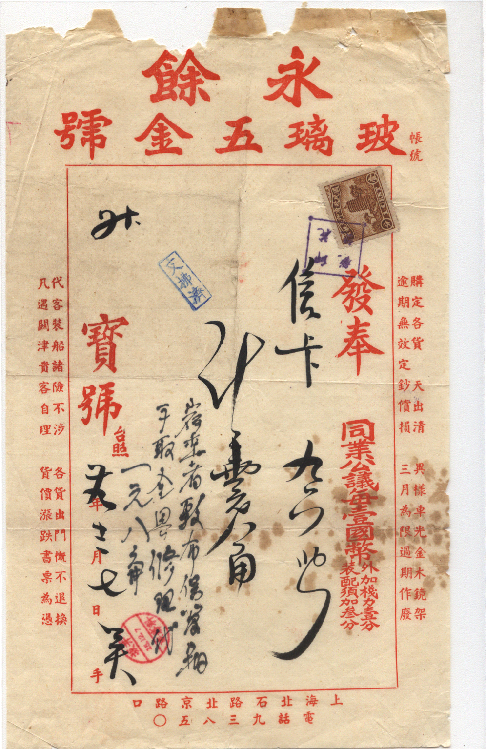 (当时常用的邮票)