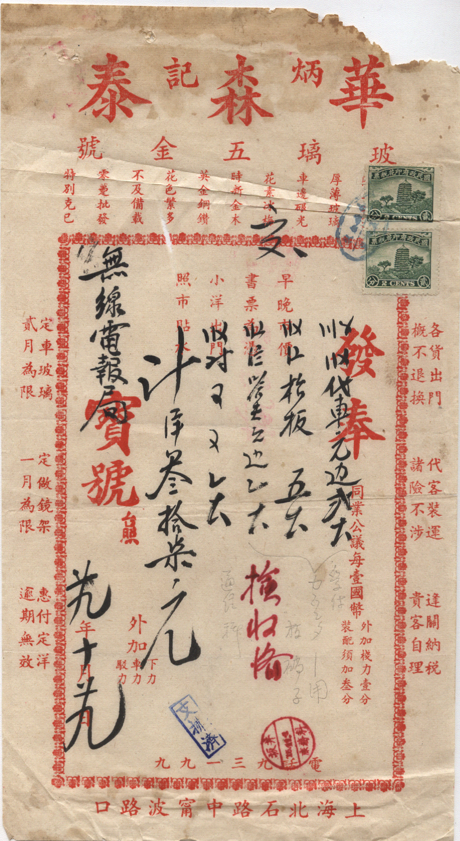 <   1940年11月15日使用于北石路的年代趣味藏品 ~ 点图放大
