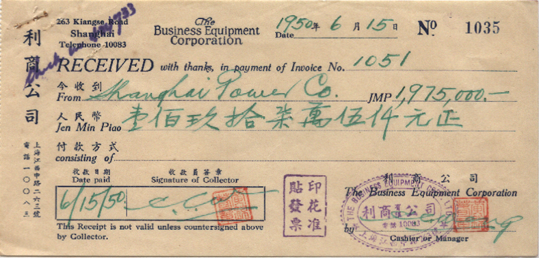<   1950年06月15日使用于江西中路的年代趣味藏品 ~ 点图放大