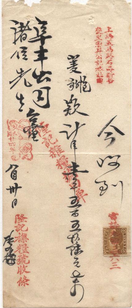 <   1935年08月30日使用于五马路的年代趣味藏品 ~ 点图放大