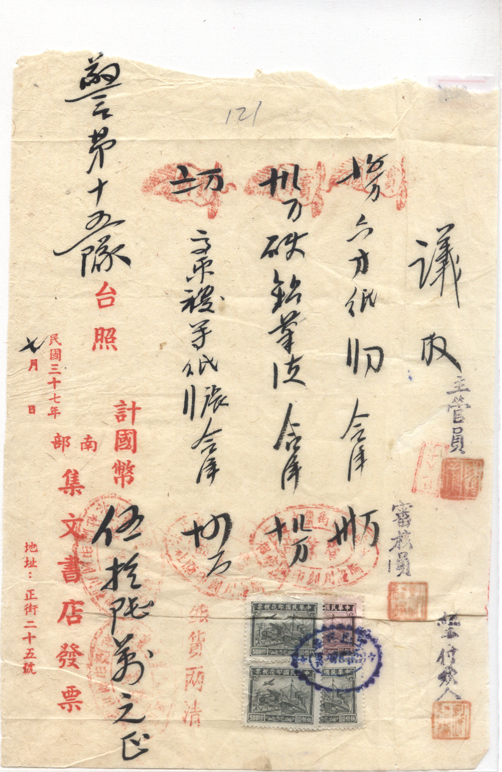 就在这一天   >   冀热察解放区发行邮票。   邓小平与刘伯承发起襄樊战役。   冀热察军邮分局发行华北解放区票--J.HB-26冀热察暂作[华北区加盖《冀热察暂作》改值邮票],一套1枚,面值介于长城币100与100之间。国币改长城币加盖票;1949年2月停用。有资料显示停用日期为1949年2月28日。   皖北共军占蒙城。   兖州激战,共军猛攻。   台湾基隆港务警察所正式成立。   行政院美援运用委员会成立。   豫东共军陈毅刘伯承猛烈向杞县睢县间之国军反攻,邱清泉部失利。   天津附近之胜芳镇为共军占领。     v   當時新聞焦點