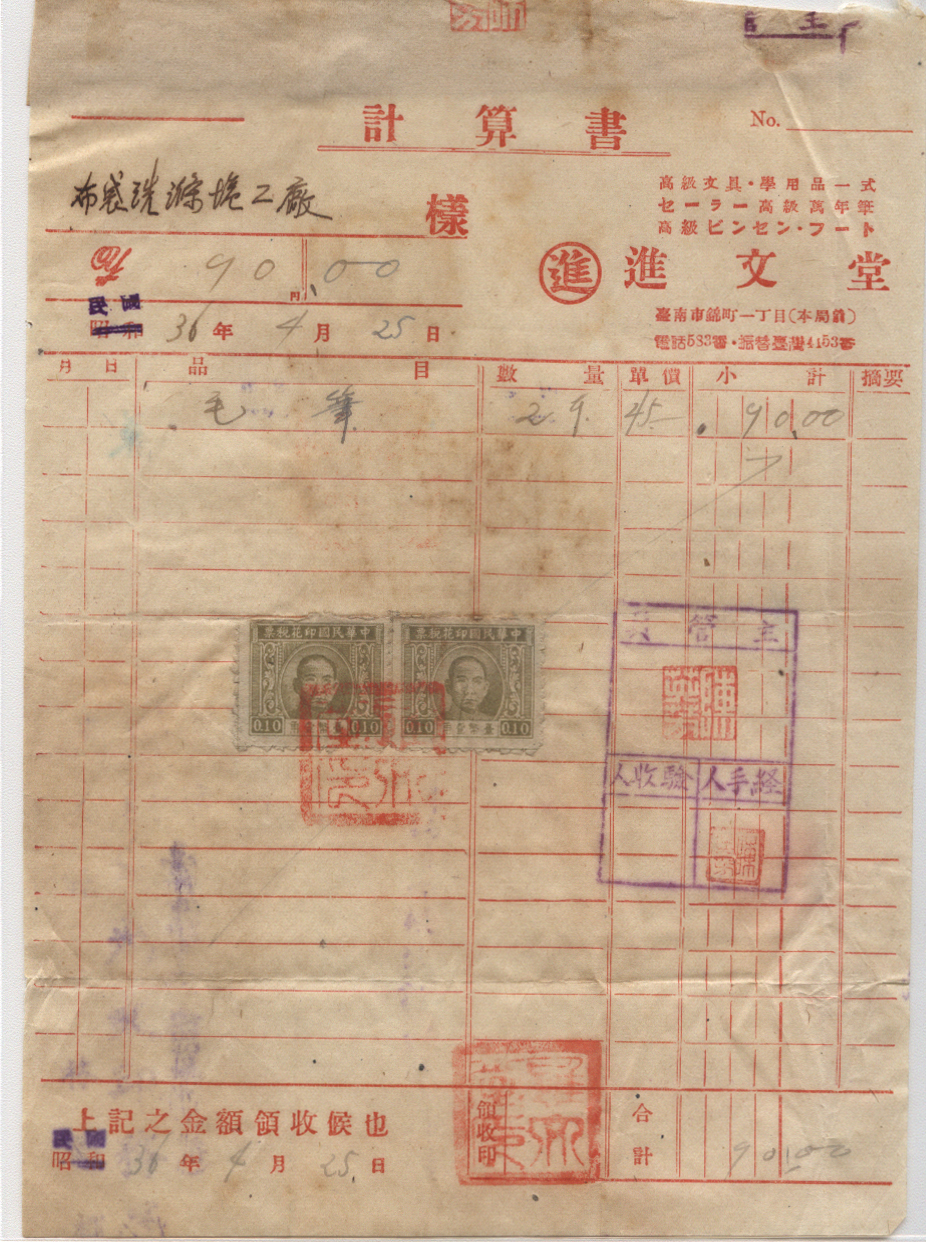 <   1947年04月25日使用于台南的年代趣味藏品 ~ 点图放大