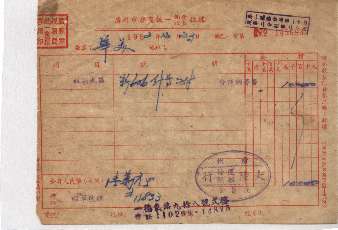 <   1952年12月23日使用于一德东路的年代趣味藏品 ~ 点图放大