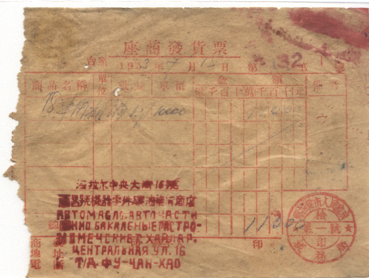 <   1953年07月15日使用于海拉尔的年代趣味藏品 ~ 点图放大