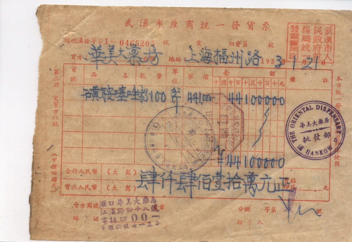 <   1953年01月21日使用于武汉市的年代趣味藏品 ~ 点图放大