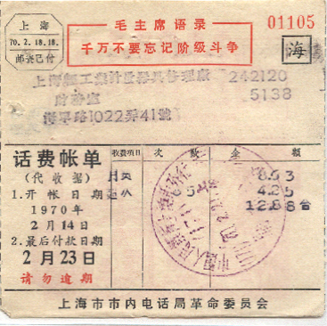 <   1970年02月21日使用于上海的年代趣味藏品 ~ 点图放大