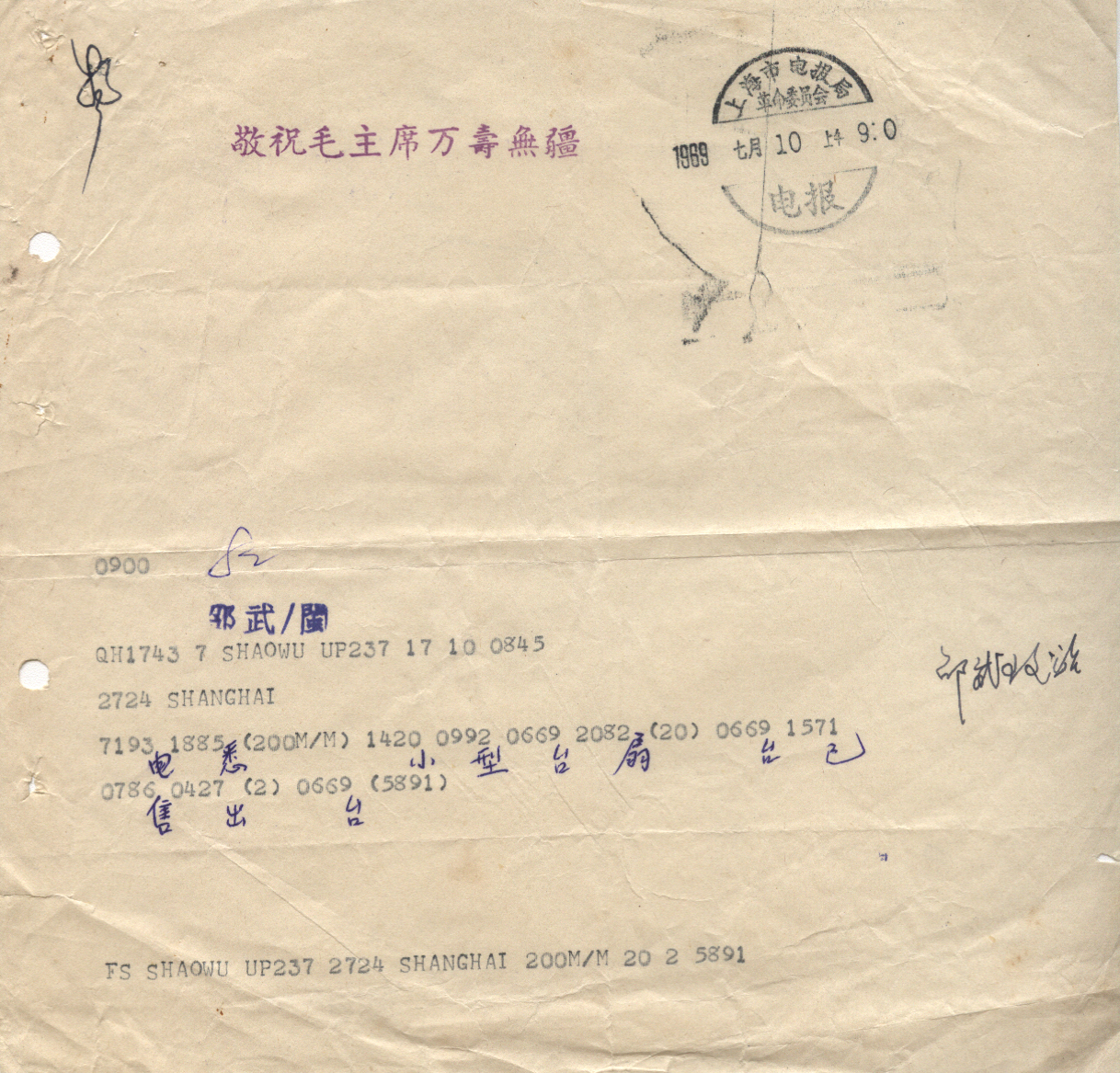 <   1989年07月10日使用于上海的年代趣味藏品 ~ 点图放大