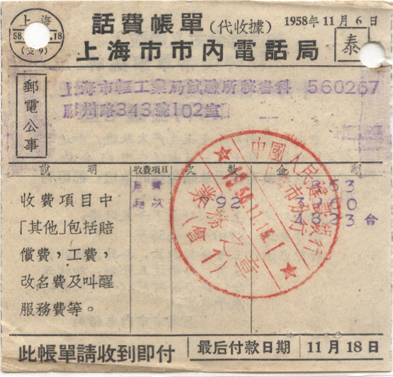 <   1958年11月16日使用于上海的年代趣味藏品 ~ 点图放大