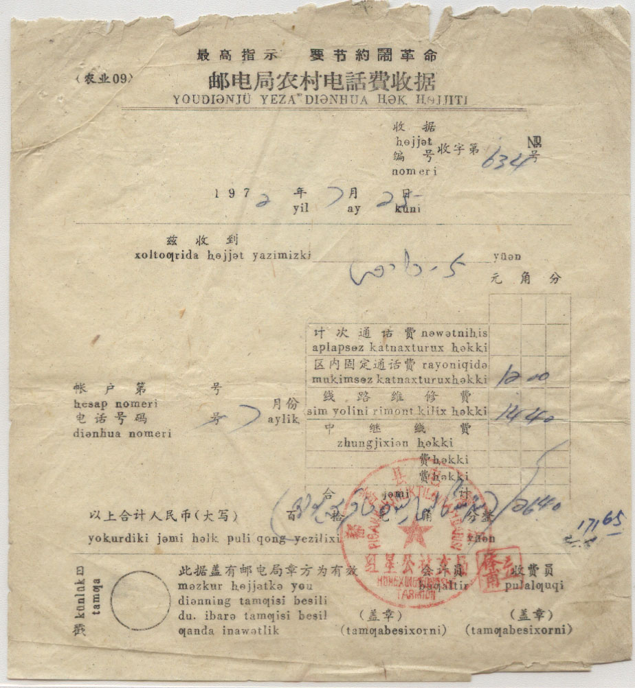 <   1972年07月25日使用于鄯善的年代趣味藏品 ~ 点图放大