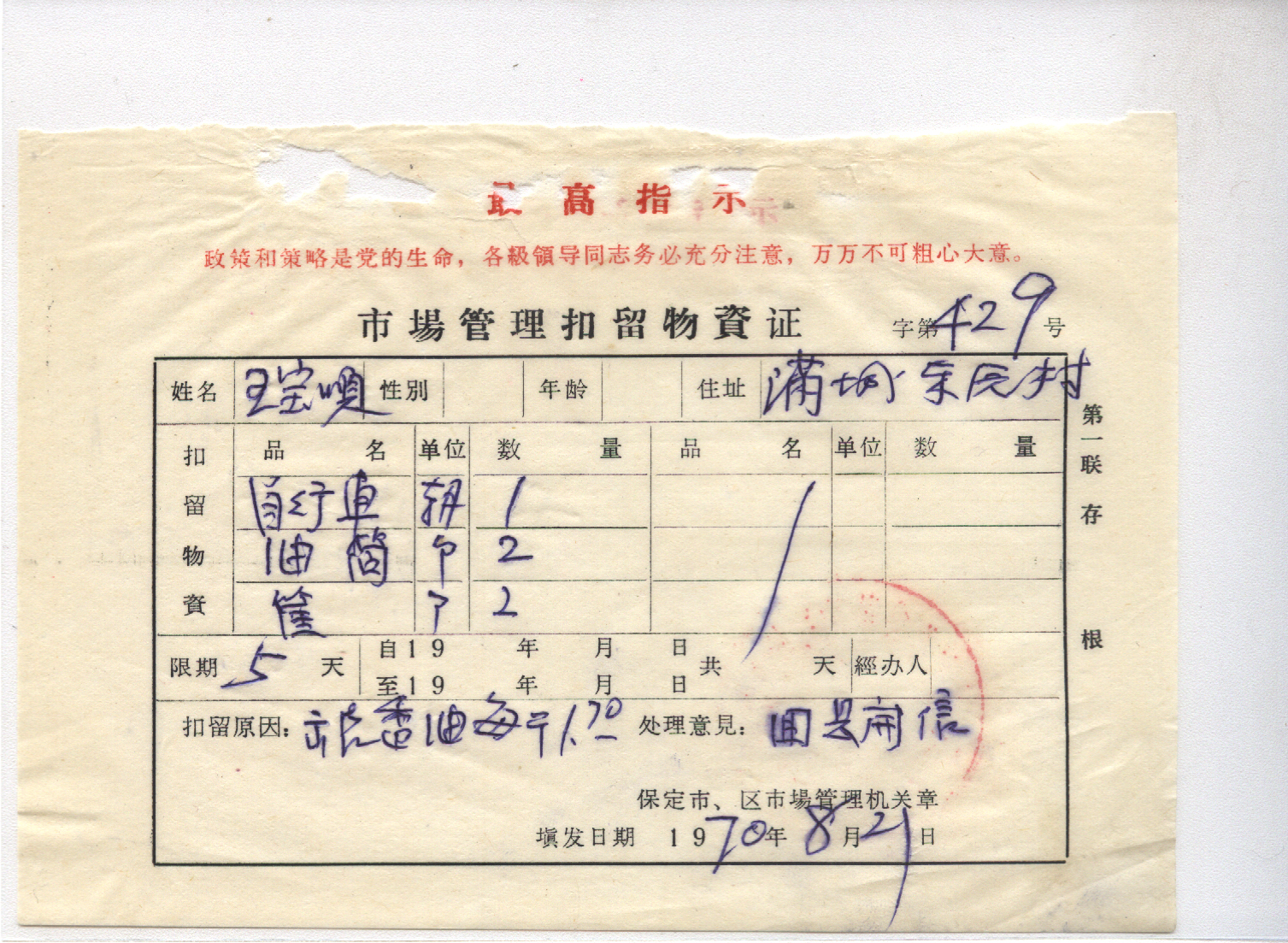 <   1970年08月21日使用于保定的年代趣味藏品 ~ 点图放大