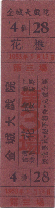 <   1953年08月13日使用于金城大戏院的年代趣味藏品 ~ 点图放大