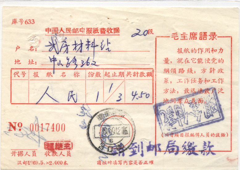 <   1969年12月16日使用于湖北的年代趣味藏品 ~ 点图放大