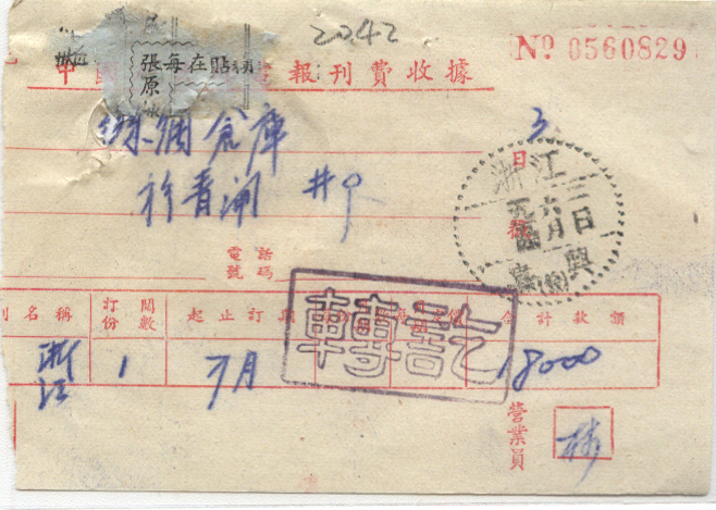 <   1954年06月02日使用于嘉兴的年代趣味藏品 ~ 点图放大