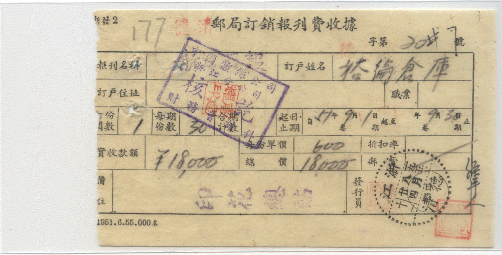 <   1951年08月24日使用于德清的年代趣味藏品 ~ 点图放大