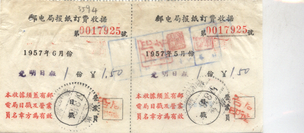 <   1957年03月16日使用于芜湖的年代趣味藏品 ~ 点图放大