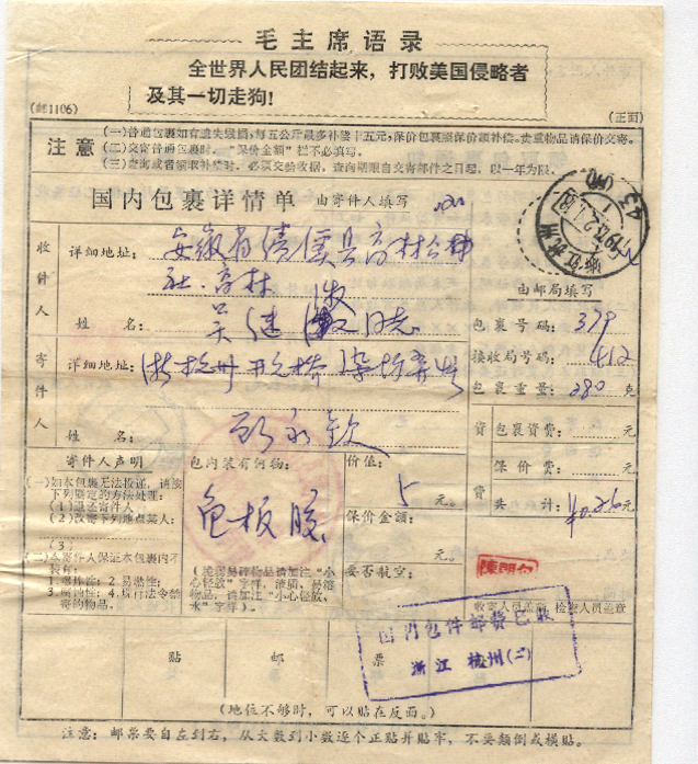 <   1973年02月01日使用于杭州的年代趣味藏品 ~ 点图放大