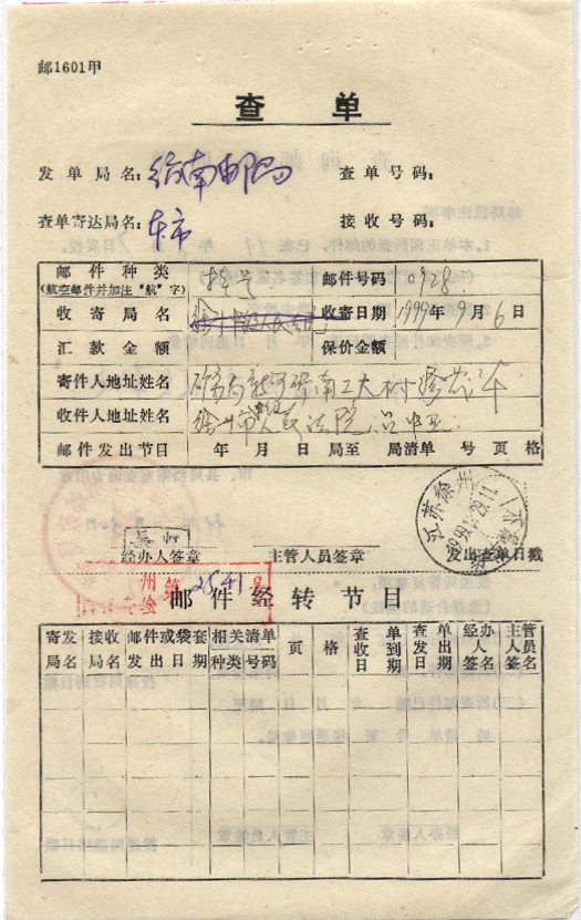 <   1999年11月29日使用于纺南的年代趣味藏品 ~ 点图放大
