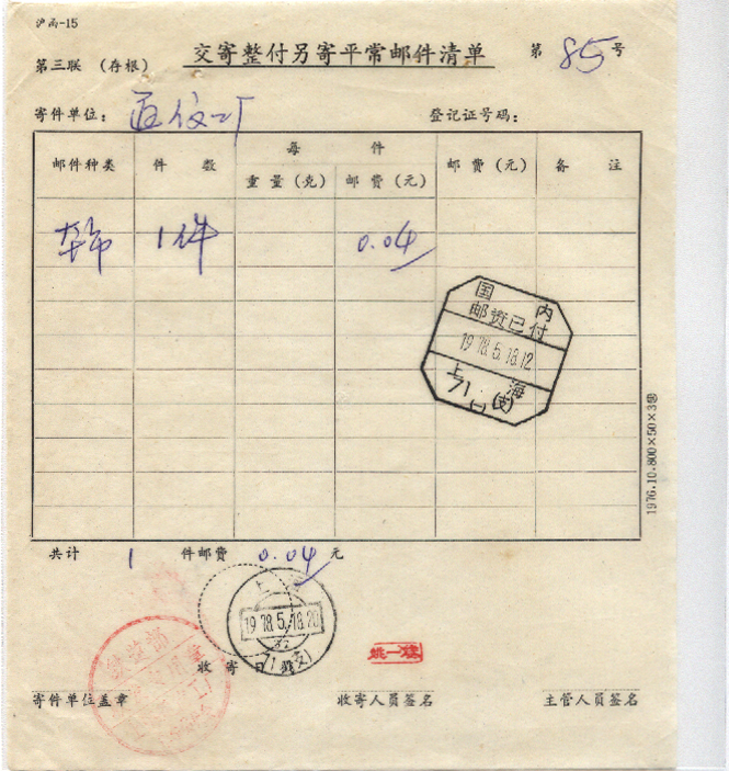 <   1978年05月18日使用于上海的年代趣味藏品 ~ 点图放大