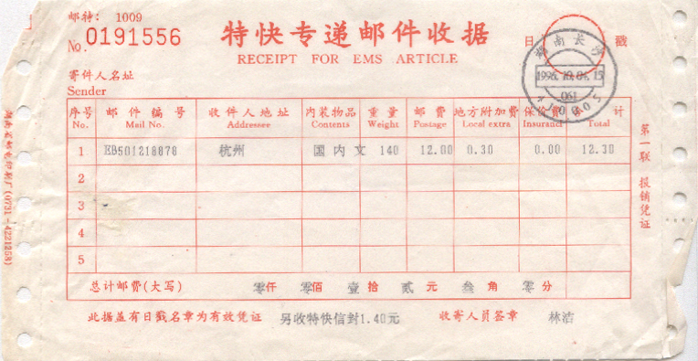 <   1996年10月04日使用于长沙的年代趣味藏品 ~ 点图放大