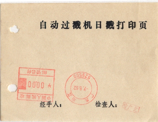 <   1992年05月07日使用于阳江的年代趣味藏品 ~ 点图放大