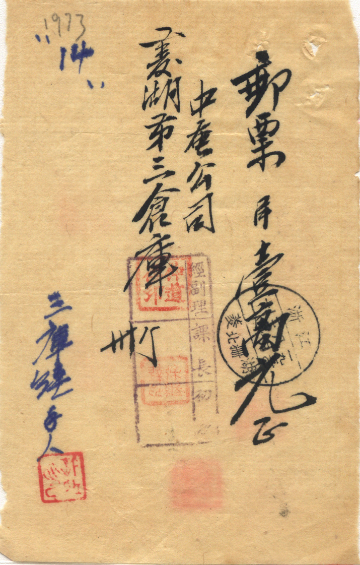 <   1950年08月30日使用于菱湖的年代趣味藏品 ~ 点图放大