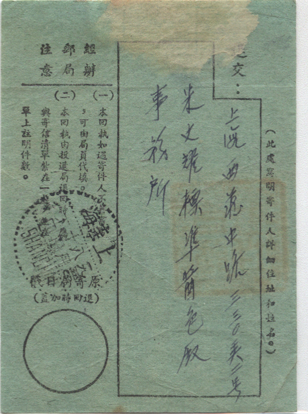 <   1950年08月10日使用于上海的年代趣味藏品 ~ 点图放大