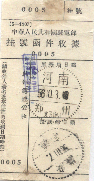 <   1956年10月03日使用于郑州的年代趣味藏品 ~ 点图放大