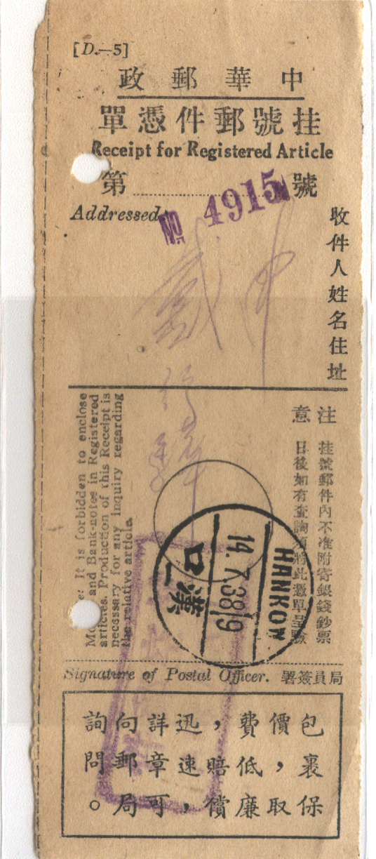<   1938年07月14日使用于汉口的年代趣味藏品 ~ 点图放大