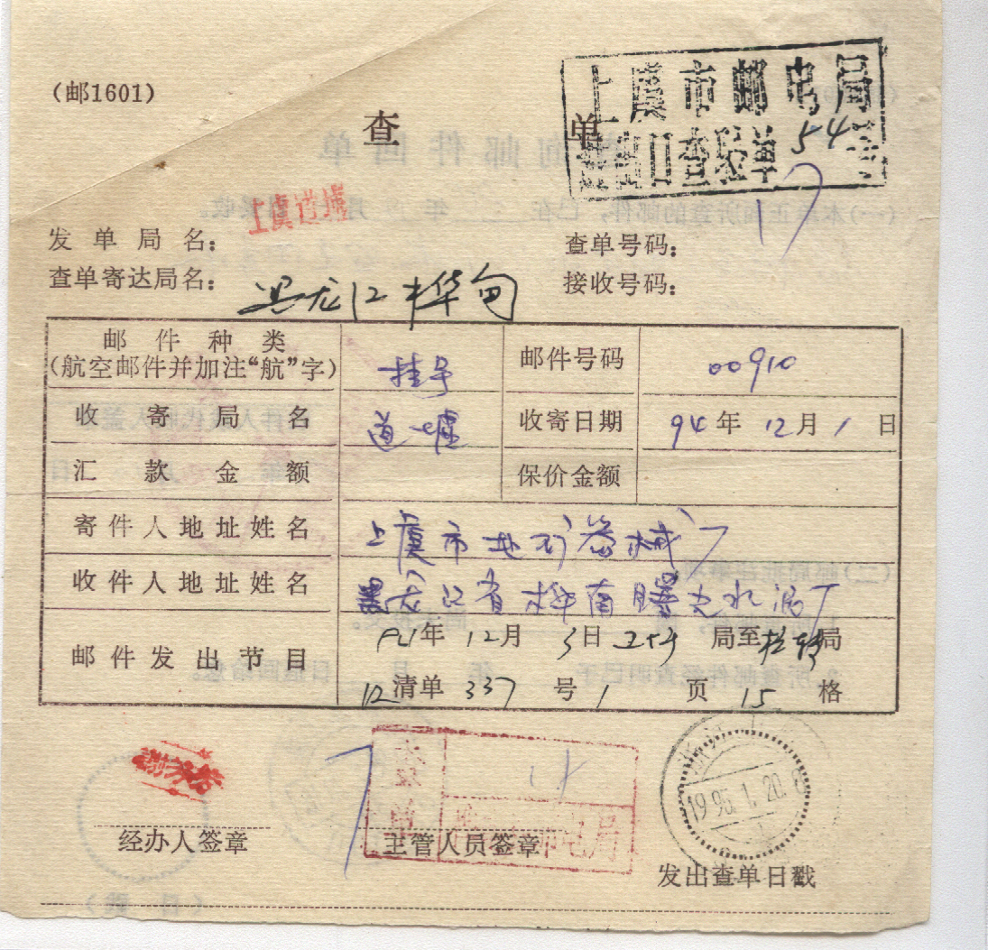 <   1995年01月20日使用于上虞的年代趣味藏品 ~ 点图放大
