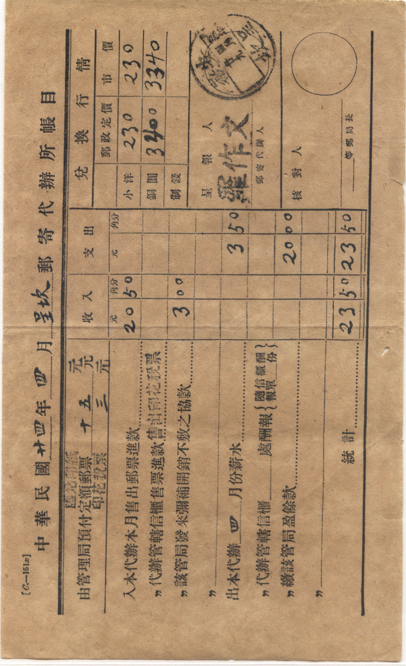 <   1935年04月29日使用于呈坎的年代趣味藏品 ~ 点图放大