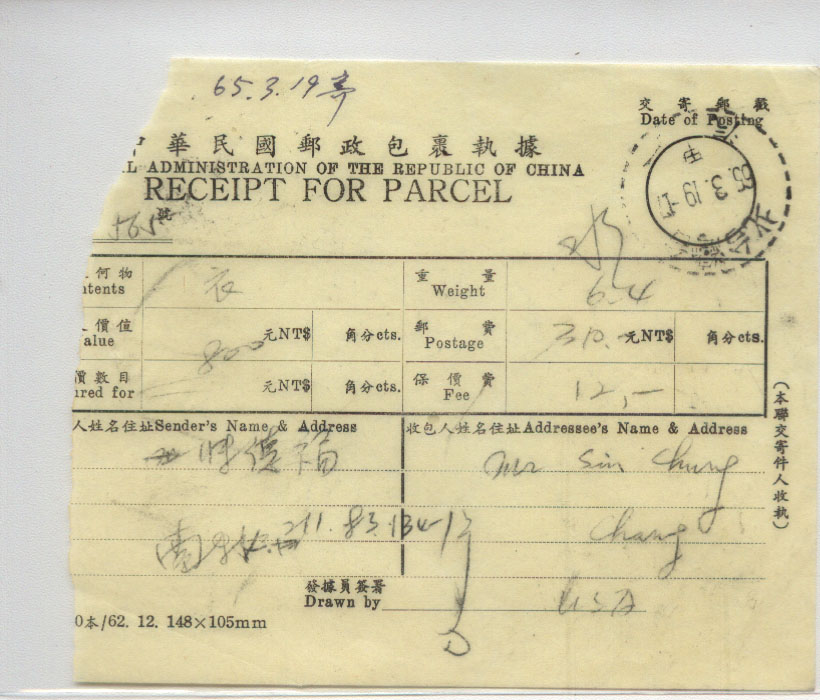 <   1965年03月19日使用于台北的年代趣味藏品 ~ 点图放大