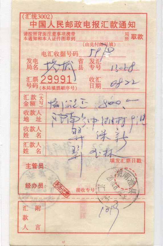 <   2001年08月22日使用于澧县的年代趣味藏品 ~ 点图放大