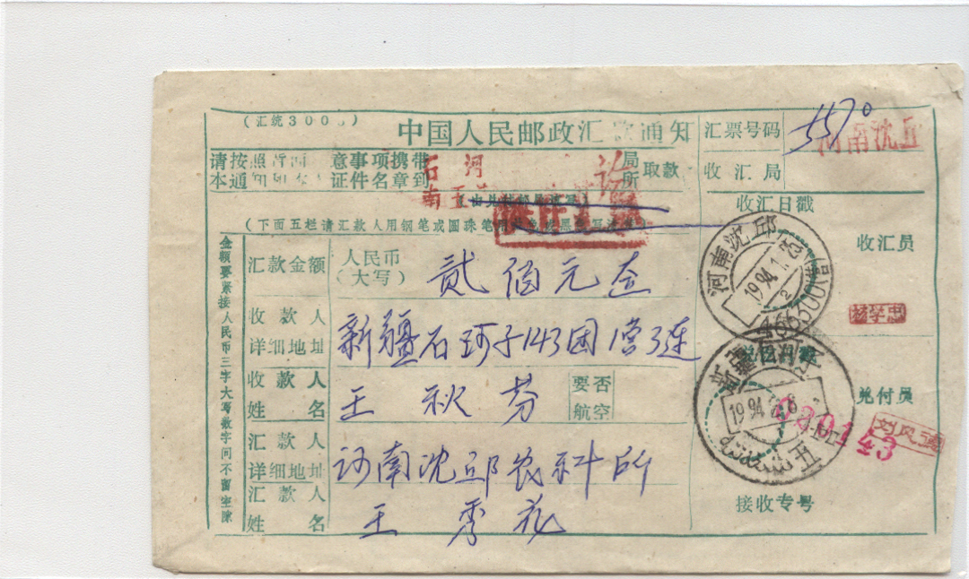<   1994年01月25日使用于沈邱的年代趣味藏品 ~ 点图放大