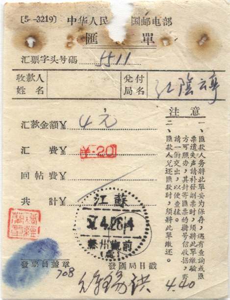 <   1957年04月26日使用于观前的年代趣味藏品 ~ 点图放大